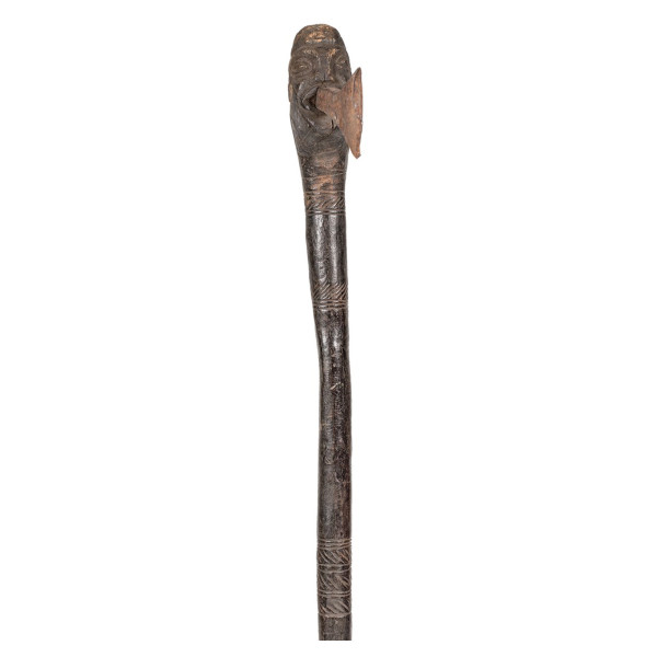 Acest topor ceremonial Yoruba, originar din Nigeria, este un bun exemplu de artă și cultură africană. Datează de la mijlocul secolului al XX-lea și măsoară 22x4x58,5 cm. Toporul este format dintr-o lamă din fier forjat și un mâner din lemn sculptat. Mânerul este decorat cu o figură umană, reprezentând un strămoș sau o zeitate. Topoarele ceremoniale Yoruba au fost folosite în timpul ceremoniilor oficiale sau pentru a afișa bogăția. Au servit ca semn de rang și autoritate și au fost purtați pe umăr atunci când proprietarul lor s-a mutat. Este o piesă unică.