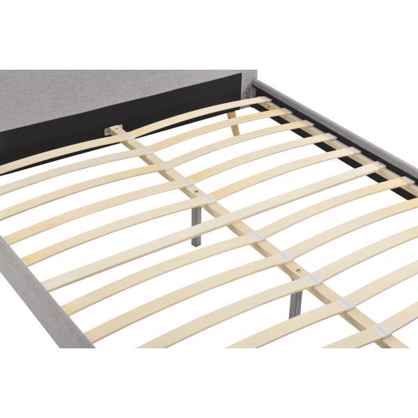Cu tăblia sa cu margini rotunjite, acest cadru de pat va aduce un stil și confort în spațiul de dormit. Versiunile Gri deschis și gri închis sunt acoperite cu țesătură. Versiunile Albastru și Gri închis sunt acoperite cu catifea. Există două dimensiuni: 153x209x89 cm este compatibil pentru saltele de 90x190 cm, 173x213x89 cm pentru saltele de 160x200 cm și 153x203x89 cm pentru saltele de 90x190 cm și, de asemenea, pentru saltele de 140x200 cm.