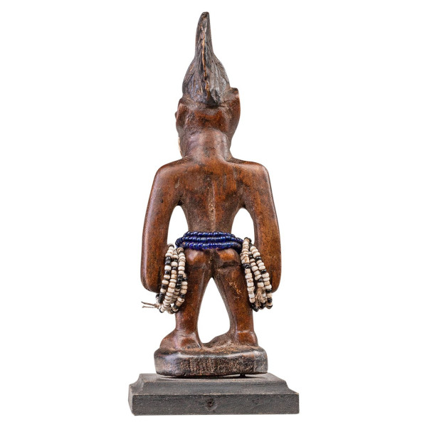 Această figură masculină Ibeji este o sculptură din lemn din tribul Yoruba din Nigeria. Măsoară 6,5x6,5x16 cm și datează din secolul al XX-lea. Suprafața figurii are o patină destul de maro. Este decorat cu perle în jurul taliei și brațelor. Această figură Ibeji este un obiect prețios care merită să fie admirat. Este o mărturie a artei și culturii tribului Yoruba.