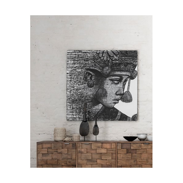 PanzaBalinese Komang de la Must Living adaugă o notă picantă pereților. Această pânză reprezintă o femeie balineză cu bijuterii tradiționale și autentice de pe insulă. Are o dimensiune 100x100 cm și este disponibil în alb și negru. Pictura pe panza va spori peretele camerei de zi.