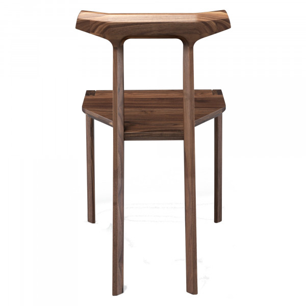 Scaunul Orca este solid și ușor. Este fabricat din lemn masiv de nuc și este asamblat fără șuruburi sau fixări metalice. Această creație a designerului Studio Gud și a mărcii Wewood măsoară 45x55x78 cm și are o înălțime a șezutului de 45 cm.