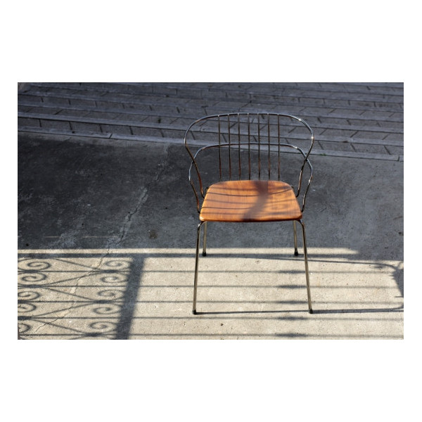 Fotoliu, design Marc Sadler. Scaun din polipropilenă, spătar din sârmă de oțel, cadru 4 picioare în