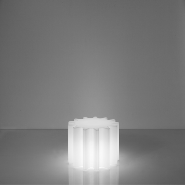 Utilizabil ca taburet sau ca măsuță de cafea, Gear se inspiră din forma tipică a unui angrenaj mecanic. Este modular. Numeroase angrenaje pot fi așezate unul lângă altul, împletindu-se ca un echipament adevărat, pentru a crea compoziții jucăușe și colorate, transformând orice spațiu într-un cadru unic. Acest echipament este potrivit pentru toate tipurile de spații din casă. Această versiune luminoasă este destinată utilizării în interior și funcționează cu un bec E27 (neinclus). Acest mobilier compus din polietilenă măsoară 55x55x43 cm.