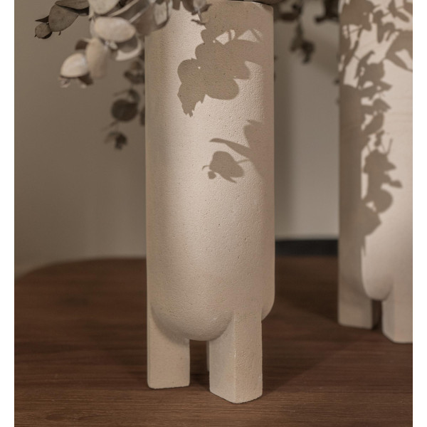 Vaza Bo Topless este o piesă de artă realizată manual din piatră de nisip locală din Java. Această piesă unică este cilindrică și constă dintr-o singură bucată de piatră palidă, modelată manual de meșteri din DBoHDi. Vaza se sprijină pe trei picioare dreptunghiulare de gresie, poziționate la același nivel cu corpul vazei pentru echilibru și armonie zen. Cu diferite dimensiuni de 12x12x25 cm, 12x12x35 cm și 12x12x45 cm, vaza Bo este o piesă elegantă și originală pentru orice obiect de mobilier.