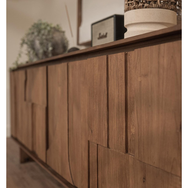 Ace Pure 4-dörrskänk är utformad för att komplettera ess-skåpets estetik. Detta element har 4 upphöjda dörrar och 4 interna hyllor. Tillverkad av återvunnet teakträ, det är imponerande för sin originalitet och kunskap. Med sin präglade grafiska design, denna artikel är fantastisk som en fristående bit. Enheten mäter 210x45x60 cm.