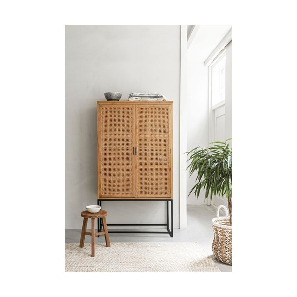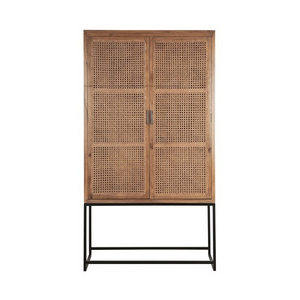 Denna Tribute garderob är ultra elegant för att skapa en industriell touch. Skåpet är tillverkat med rotting, mindi trä och rem. Den mjuka naturliga färgen matchar sin svarta metallbas. Den består av två dörrar. Det erbjuder gott om förvaringsutrymme.