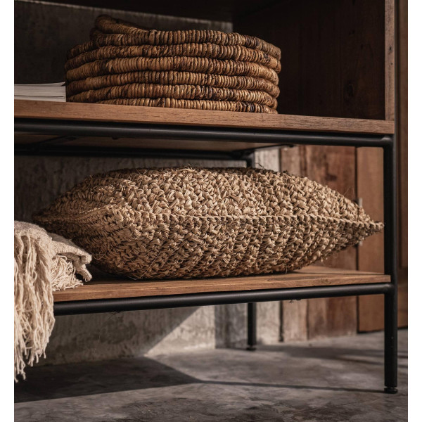 Denna garderob är ett riktigt mästerverk av hantverk. Med sin rena design och rena linjer erbjuder den en enkel och elegant estetik som aldrig kommer att gå ur stil. Hyllorna är gjorda av en blandning av återvunnet teakträ och järn, vilket ger dem ett modernt och rikt utseende. Med sina dimensioner på 94x42,5x195 cm är denna öppna möbel mycket mångsidig och kommer att anpassa sig