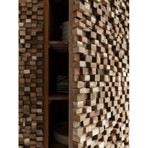 Denna Sticks-garderob är en exceptionell möbel med imponerande dimensioner på 90x50x180 cm. Den är helt designad i förstenat trä, vilket ger den en unik naturlig nyans. Som ett inslag i inredningen förkroppsligar den naturens råa skönhet och lägger till en touch av äkthet och sofistikering till utrymmet.