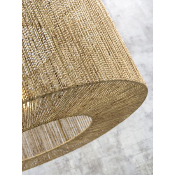 Golvlampan Iguazu XL är en riktig blickfångare. Tillverkad i jute och bambu, tillför denna lampa elegans och modernitet till ett rum. Den utmärker sig med en höjd på 218 cm, en bredd på 165 cm samt en basstorlek på 43x25x4 cm. Lampskärmen har en diameter på 50 cm och en höjd på 22 cm. Denna lampa har en E27-sockel (glödlampa ingår ej).