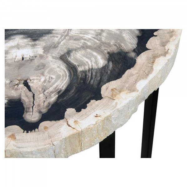 Det höga bordet Occ är tillverkat av överlägset och unikt förstenat trä med ett underrede i järn som ger den sista touchen för att förhöja inredningen. Denna unika möbel utmärker sig genom sin stil tack vare sin svarta och naturliga färg. Måtten kan variera på grund av de olika formerna på träskivan. Bordets höjd är 60 cm. Bordsskivan har en bredd mellan 48 och 56 cm och ett djup mellan 38 och 43 cm.
