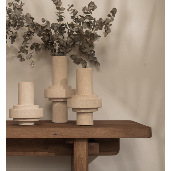 Sidobordet Alpha är ett vackert sidobord som finns i två storlekar. Den kan användas perfekt mot en vägg eller som en oberoende möbel. De solida, traditionella benen, gjorda av två återvunna teakbjälkar, är en anmärkningsvärd funktion under den hantverksmässiga konstruktionen och den eleganta teakbordsskivan.