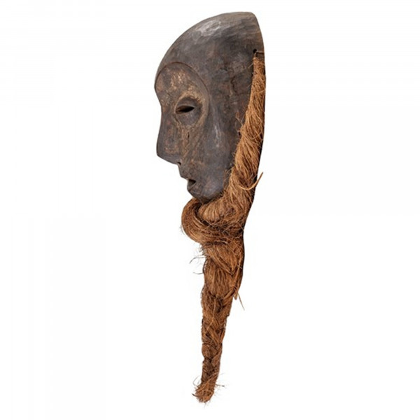 Föratt lägga till en djärv och unik dekoration i ett rum är Bwani Mask av Versmissen idealisk. Denna kollektion är unik tack vare sitt naturliga trä och raffiamaterial. Denna 1900-talsmask har en standarddesign med symbolisk och rituell betydelse. Den är original i DR Kongo och har en dimension på 13,5x24x53 cm.