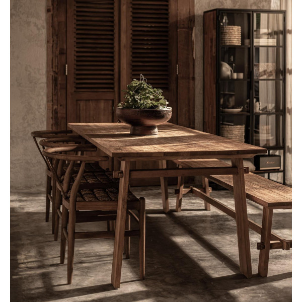 Matbordet Artisan är både rustikt och tidlöst. Den är gjord av massivt, återvunnet teakträ från århundraden gamla hus i avlägsna byar i östra Java. Det speciella med denna tabell ligger i benens distinkta sammansättningar, som är inspirerade av traditionell javanesisk konstruktion. Bordet finns i fyra olika storlekar. Med hantverksmatbordet kan du bjuda in vänner och familj att dela en god måltid i en unik estetik, som kombinerar modernitet och tradition.