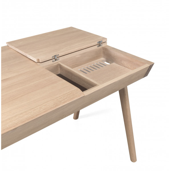 Det kompakta skrivbordet Metis är tillverkat av massivt ekträ. Det erbjuder förvaringsutrymmen tack vare sina tre lådor, ett hemligt fack och två utrymmen med lock. Dess designer är Gonçalo Campos. Skrivbordet Metis mäter 140x76x75 cm.