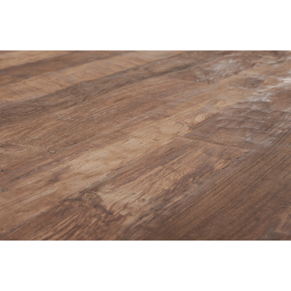 Soffbordet Beam är tillverkat av återvunnet teakträ och har en struktur i svart metall. Teakträ är naturligt motståndskraftigt mot fukt och är rötbeständigt tack vare dess densitet och oljiga innehåll. Det är den ekologiska trenden. Bordet finns i två storlekar och två färger: naturligt brunt och svartfärgat. Dess bordsskiva är 6 cm tjock.