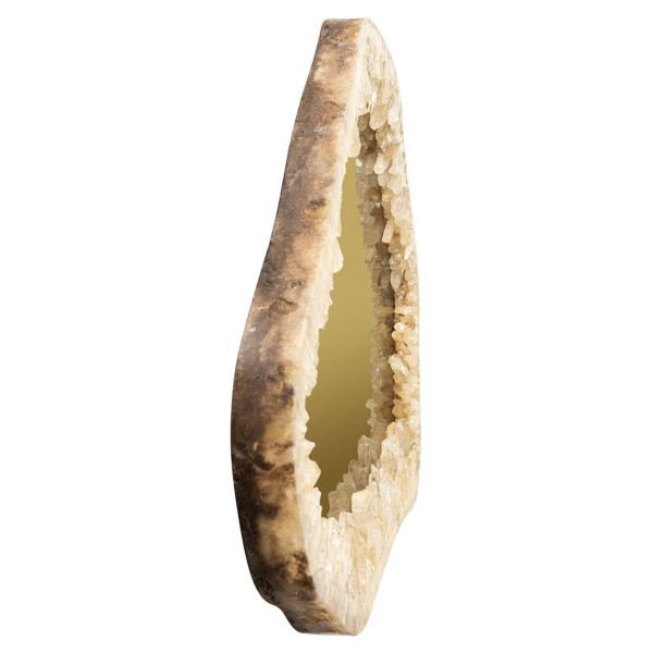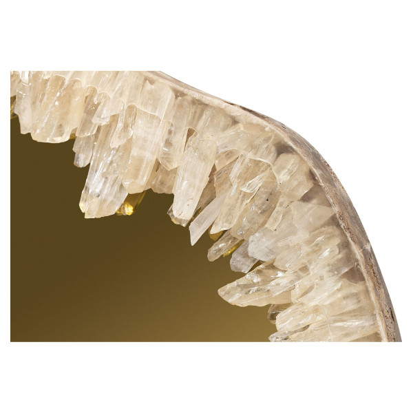 Den naturliga kvartsspegeln är ett unikt och elegant dekorativt objekt som mäter 5,5x81x80 cm. Dess struktur är gjord av en blandning av glas, harts och naturlig kvarts, vilket ger denna spegel ett raffinerat utseende och en behaglig konsistens vid beröringen. Kombinationen av dessa högkvalitativa material resulterar i en robust och hållbar spegel. Natural Quartz spegel är färgad i guld och kvarts, med nyanser av beige och brunt som belyser den naturliga skönheten i kvarts. Den naturliga kvartsspegeln kan användas i alla rum i huset, vare sig det är i ett sovrum, ett vardagsrum eller ett badrum. Den kan användas ensam eller i kombination med andra dekorativa element för att skapa en varm och välkomnande atmosfär.