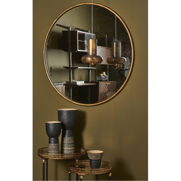 Gramdo rund guldspegel är ett elegant, enkelt och ljust val för dekoration. Dess järnram ger en touch av sofistikering till helheten. Med en storlek på ø120 cm erbjuder denna spegel en stor reflekterande yta som kan skapa en känsla av rymd och ljusstyrka i rummet. Dess runda design ger en harmonisk och mångsidig estetik som anpassar sig till olika dekorationsstilar. Gramdo-spegeln är en riktig kontaktpunkt i alla rum i huset.