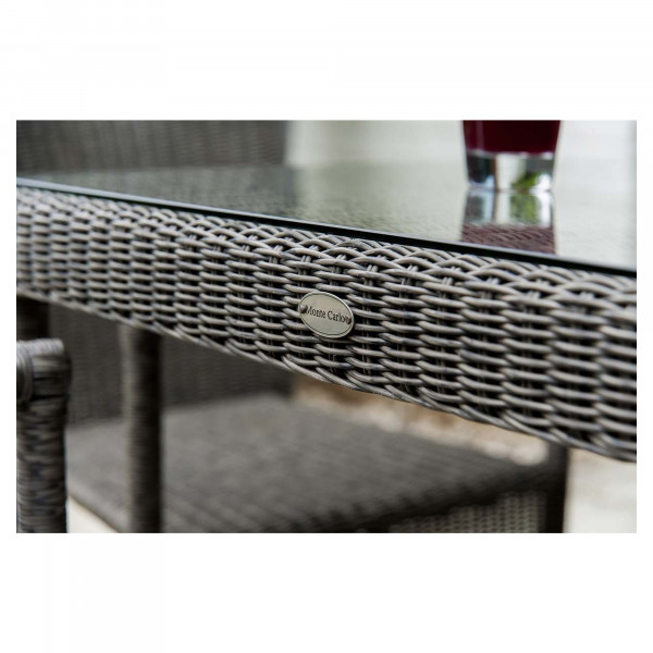 Detta fyrkantiga Monte Carlo-bord från Alexander Rose är handvävt med syntetfiber och aluminium. Den har en glasskiva för att skydda ytan och ge en jämn design. Denna antracit grå möbler i exotisk stil ger en stor dimension på 80x80x74 cm. Denna möbel från insidan eller insidan kommer perfekt att förse vardagsrummet.