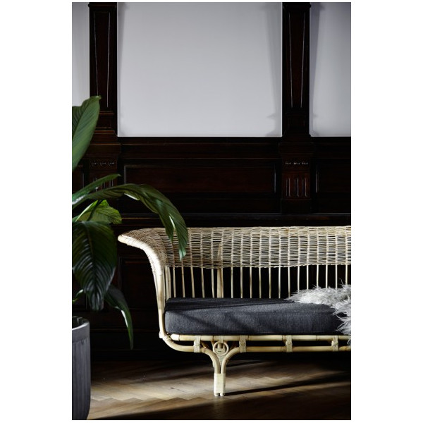 Denna Belladonna-soffmodell är en nyutgåva av Franco Albinis design från 1951. Designad med handvävd rotting och utrustad med sittdynor, kommer det att säkerställa maximal komfort och avkoppling. Denna soffa i den råa naturliga färgen mäter 195x75x78 cm. Soffan har sittdyna. 55×40 cm kuddar för ryggkomfort kan läggas till.