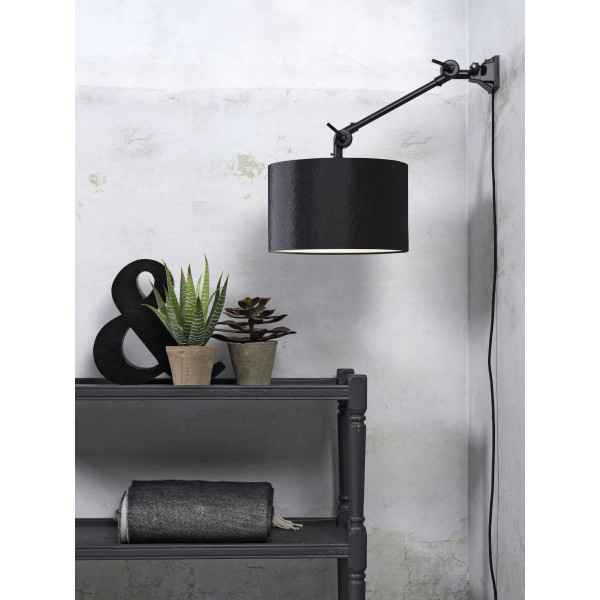 Vägglampan Amsterdam med två leder kommer att komplettera belysningen i ett inomhusrum perfekt. Denna lampa är utrustad med en ledad arm i järn och en lampskärm i bomull. När den är monterad skapar den omedelbart en varm atmosfär. Denna lampa har en höjd på 30 till 60 cm, en bredd på 65 cm till 85 cm och en bas på 7,5x7,5 cm. Den har en E27-sockel (glödlampa ingår ej).