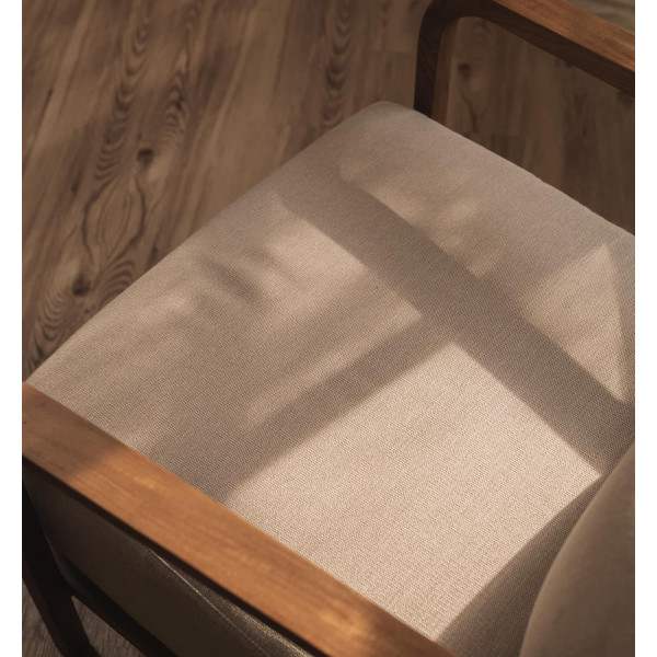 Classy Lounge Chair är en fåtölj i klubbstil med elegant återvunnet teakträ, med armstöd och ramdetaljer inspirerade av ”wishbones”. Djupt vadderad och otroligt bekväm, Classy Lounge stol har en kudde täckt med ett praktiskt, avtagbart och tvättbart beige tygöverdrag. Med de perfekta måtten 72x82x66/80 cm är denna fåtölj det perfekta tillskottet till ditt vardagsrum eller sovrum för att skapa en varm och sofistikerad atmosfär. Dess eleganta design och överlägsna tillverkningskvalitet gör det också till ett utmärkt val för professionella mottagningsområden. Välj fåtöljen Classy Lounge och njut av dess lyxiga komfort varje dag. Tillverkningen är avsedd att vara miljöansvarig med en återvunnen ekologisk bomullsbeläggning och en solid återvunnen teakstruktur.