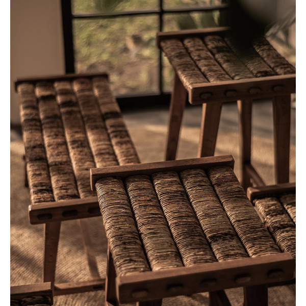 Caterpillar kuhinjski stol je izdelan iz trpežnih, trpežnih vlaken abake in certificiranega predelanega lesa tikovine. Je lep in dolgotrajen dodatek vašemu domu. Z ročno tkanim zgornjim delom iz abake in okvirjem iz masivnega lesa se lahko uporablja tako kot sedež kot za dekorativne namene. Njegova velikost je 45x36x65 cm.