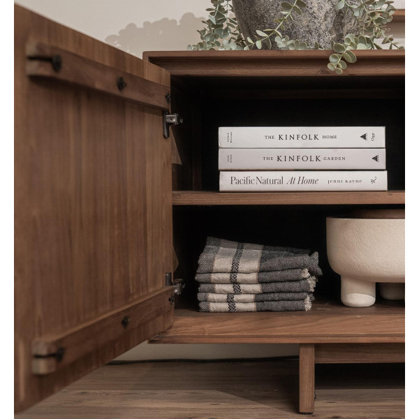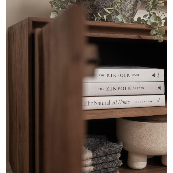 4-vratna omara Ace Pure je zasnovana tako, da dopolnjuje estetiko omare Ace. Ta element ima 4 dvignjena vrata in 4 notranje police. Narejen je iz predelanega tikovine, je impresiven zaradi svoje izvirnosti in znanja. S svojim reliefnim grafičnim oblikovanjem je ta izdelek osupljiv kot samostojni kos. Enota meri 210x45x60 cm.