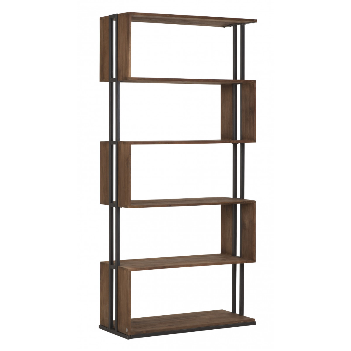Knjižna omara iz recikliranega tika s črnim kovinskim okvirjem