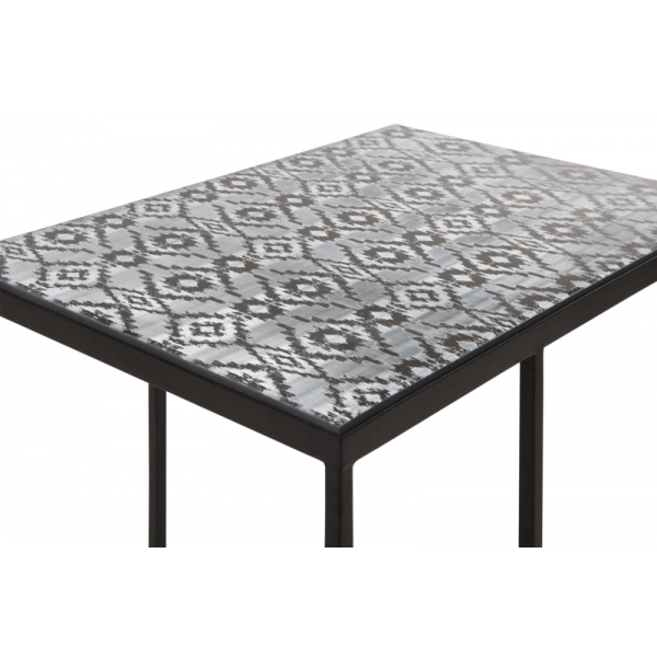 Model prenosne računalniške mize MUST Living Sumba je navdihnjen z domorodnimi oblačili, najdenimi na indonezijskem otoku Sumba. Dimenzije mize so 53x38x63 cm. Noge so iz črnega kovine. Zgornji del iz smole prinaša edinstven dizajn.