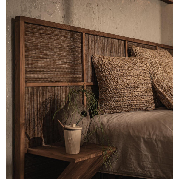 Postelja Coco z nočno omarico je izjemen kos izdelave, ki ga navdihuje japonski dizajn pohištva in je narejen iz vrhunskih organskih materialov. Postelja je v celoti izdelana ročno iz predelane tikovine, z vzglavjem, okrašenim s tkanjem kokosovih palmovih listov. Elegantna zasnova vključuje dve praktični nočni omarici. Na voljo v različnih velikostih.