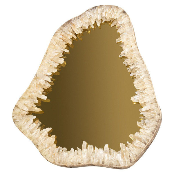 Naravno kremenčevo ogledalo je edinstven in eleganten dekorativni predmet velikosti 5,5x81x80 cm. Njegova struktura je narejena iz mešanice stekla, smole in naravnega kremena, kar daje temu ogledalu prefinjen videz in prijetno teksturo na dotik. Kombinacija teh visokokakovostnih materialov povzroči robustno in trajno ogledalo. Ogledalo Natural Quartz je obarvano v zlato in kremen, z odtenki bež in rjave barve, ki poudarjajo naravno lepoto kremena. Naravno kremenovo ogledalo se lahko uporablja v kateri koli sobi v hiši, bodisi v spalnici, dnevni sobi ali kopalnici. Uporablja se lahko samostojno ali v kombinaciji z drugimi dekorativnimi elementi, da ustvarite toplo in prijetno vzdušje.