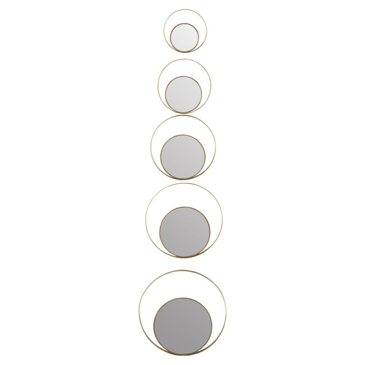 Athezza Crescent Moon ogledalo je odlično ogledalo z značilnim dizajnom. Sestavljen je iz kovinskega okvirja in steklene površine. Ogledalo je oblikovano kot polmesec, kar mu daje edinstven in umetniški videz. Ta komplet petih ogledal vključuje predmete z dimenzijami: ø40 cm, ø35 cm, ø30 cm, ø25 cm in ø20cm, ki ponuja različne možnosti za ureditev in okrasitev prostora. Ta zasnova dodaja pridih elegance in sloga v katero koli sobo v domu.