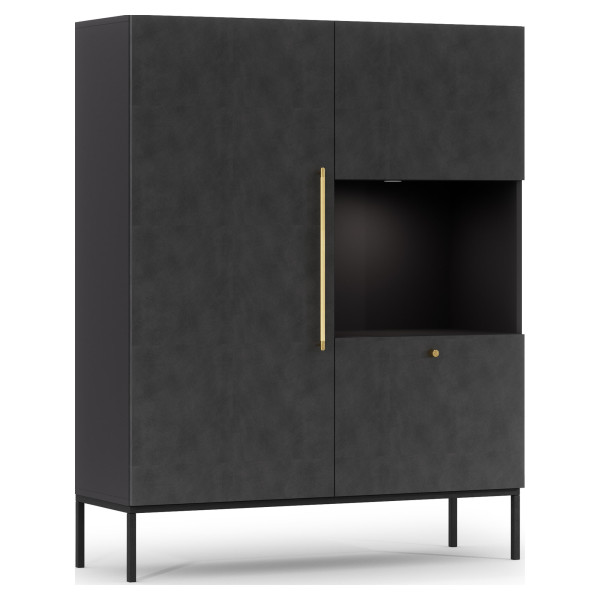 Lanzzi vitrina blagovne znamke Eltap je funkcionalen, eleganten in enostaven za vzdrževanje kos pohištva za rafiniran dom. Izdelana s črnim kovinskim okvirjem in laminirano ploščo MDF, je ta vitrina trdna, odporna na poškodbe. Ima štiri zaprte police in eno odprto polico ter prostoren predal z mehkim zapiranjem, ki zagotavlja veliko prostora za organizacijo predmetov, kot so oblačila, knjige in okrasni predmeti. Dimenzije omare so 120x40x150 cm, zaradi česar je vsestranska izbira za dnevno sobo, spalnico, hodnik, študijo ali pisarno. Na voljo sta dve barvni konfiguraciji: črna z zlatimi ročaji ali črna s hrastovim sprednjim delom.