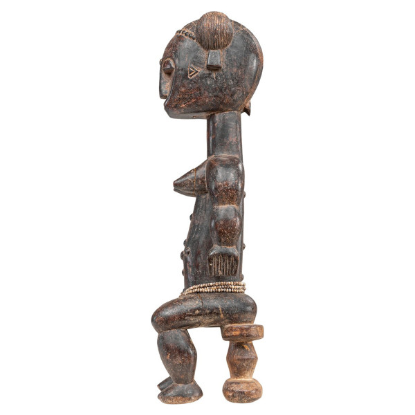 Ženske figure Attye Lagoon slovijo po svoji presenetljivi lepoti in obredni uporabi za spodbujanje plodnosti, tradicijo, ki jo delijo številni ljudje, ki živijo ob laguni. Vendar pa Attyejeve figure ločuje sledi skarifikacije na vratu in trebuhu, ki se pogosto ustvarijo z vstavljanjem majhnih lesenih čepov, namesto da bi jih reliefno izklesali. Ta edinstven kos naravnega lesa iz Slonokoščene obale, kroglice in žeblji, meri 13x14,5x47 cm. Uteleša kulturno bogastvo Attyesov in njihov občutek za estetiko, hkrati pa nosi simboliko plodnosti. Ta skulptura izvira iz Slonokoščene obale in izvira iz sredine 20. stoletja.
