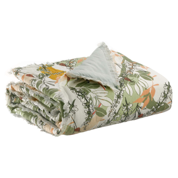 Ta karira Gino je narejena iz 100% bombaža na hrbtni strani, 50% perila in 50% bombaža na sprednji strani. V kombinaciji s poliestrskim polnilom ti materiali zagotavljajo toplo toploto. Njegov obrobljen zaključek na vseh štirih straneh in rastlinski vzorec prinašata mehkobo celotnemu dodatku. Ta snežna odeja Gino doda dekoracijo, ki je v harmoniji z dimenzijo 135x200 cm.