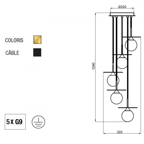 Viseča svetilka Cascade očara s svojimi tekočimi linijami in zelo uspešno kombinacijo materialov. Oddaja čudovito svetlobo, ki ustvarja prijetno vzdušje. Viseča svetilka vključuje 5 reflektorjev, opremljenih z G9 grlom, in se dobavlja brez žarnice. Izdelana je iz kovine in stekla.
