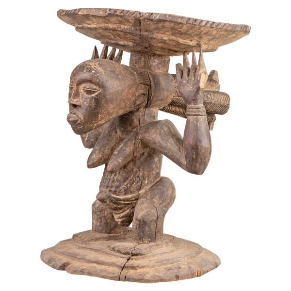Ta stolček Luba iz sredine 20. stoletja, ki izvira iz Demokratične republike Kongo, uteleša moč in avtoriteto. Kot pomemben simbol ni bil zgolj sedež, ampak duhovno posodo za vodjo. Kariatide predstavljajo ženske prednike, ki odražajo materinsko linijo v tej patriarhalni družbi. Meritve, 41x43x58 cm in izdelane iz naravnega lesa.