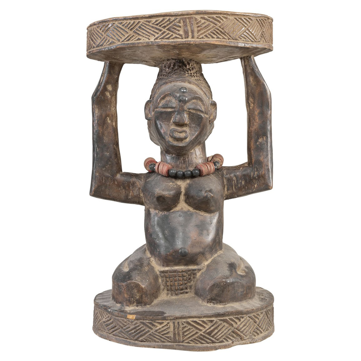 Kraljevi stolčki Luba, čeprav funkcionalni, služijo bolj kot sveti okraski, ohranjeni v kraljevih palačah, kot pa kot sedeži. Njihova zasnova, bodisi abstraktna ali figurativna, včasih vključuje ženske kariatide, ki izražajo lubinsko vizijo ženskega telesa kot duhovnega pokrova, ki podpira božansko kraljestvo. Ta stolček iz sredine 20. stoletja meri 23x24x40 cm in je v celoti izdelan iz naravnega lesa, uteleša bogato kulturno tradicijo ljudstva Luba