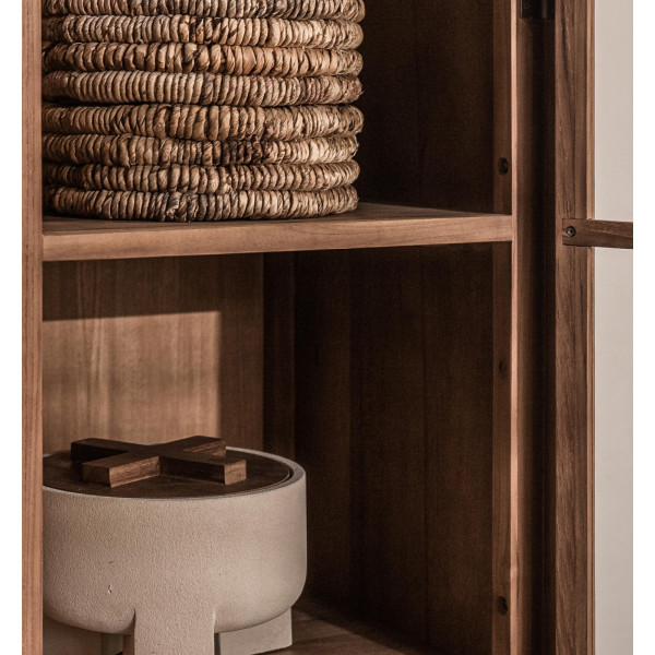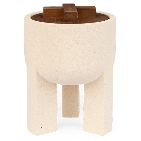 Skleda Bo je vrsta globokih skodelic, oblikovanih iz enega samega kosa bledega lokalnega javanskega kamna, ki so ga ročno obdelali obrtniki DBodHi. Vsaka posoda je prekrita s čudovitim predelanim pokrovom iz tikovine, izrezljana in obrnjena do popolnosti, da poudari obliko črke X/O. Na voljo v dveh velikostih, skleda Bo meri 14x14x19,5 cm in 24x24x17,5 cm, kar zagotavlja popolno izbiro za vsako priložnost in potrebe. Narejena previdno in z visoko kakovostnimi naravnimi materiali, skleda Bo je ekološki in eleganten izdelek, ki bo vašemu dekorju ali mizi dodal edinstven pridih.