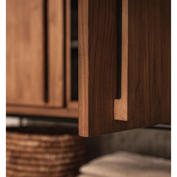 Príborník Outline je moderný kus nábytku s čistým dizajnom, ktorý sa ľahko prispôsobí akémukoľvek štýlu interiéru. Komoda je ručne vyrobená z regenerovaného teakového dreva a má elegantný železný rám, ktorý dodáva jej modernému retro vzhľadu. Za dvoma dverami sú štyri police, ktoré sú ideálne na ukladanie riadu, hračiek alebo čokoľvek iného, čo chcete. Jeho rozmery sú 99x38x100 cm.