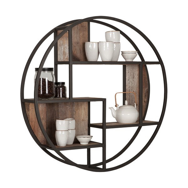 Nástenný držiak z recyklovaného teaku s čiernym kovovým rámom