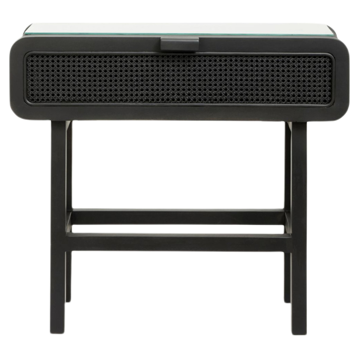 Tento konzolový stôl Merge prináša interiéru nádych prirodzeného pôvabu. Hra na kontraste svojej štruktúry z teakového dreva so sklenenou doskou dodá dekorácii nepopierateľný elegantný nádych. Je to veľmi praktické vďaka svojej pletenej zásuvke zo sieťoviny. Tento model meria 35x90x80 cm a je k dispozícii v dvoch rôznych farbách.