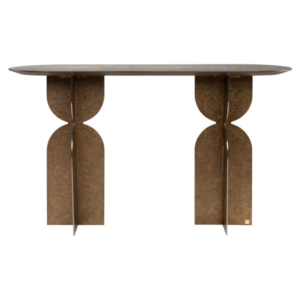 Konzolový stôl Raya má rozmery 46x140x80 cm a je vyrobený z kombinácie vysoko kvalitných materiálov vrátane ocele, dubu a MDF. Tento konzolový stolík má kávu a bronzovú farbu, čo mu dodáva elegantný a sofistikovaný vzhľad. Vďaka svojej kompaktnej veľkosti a elegantnému dizajnu je možné konzolový stôl Raya použiť aj vo vchode alebo chodbe, aby dodal domácemu dekoru nádych sofistikovanosti. Doska stola je chránená proti škvrnám dvojzložkovým PU vrchným