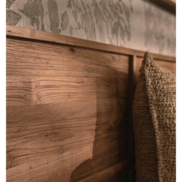 Posteľ Outline s nočným stolíkom je výnimočným produktom vyrobeným výhradne ručne z regenerovaného teakového dreva. Jeho pôsobivé čelo postele, telo a nočné stolíky svedčia o neporovnateľnom remeselnom spracstve. Tenké železné nohy dodávajú celku nádych elegancie a zároveň vytvárajú dokonalú rovnováhu so súčasným dizajnom. Táto posteľ je k dispozícii v rôznych veľkostiach a je kvalitnou voľbou pre jedinečnú a elegantnú spálňu.