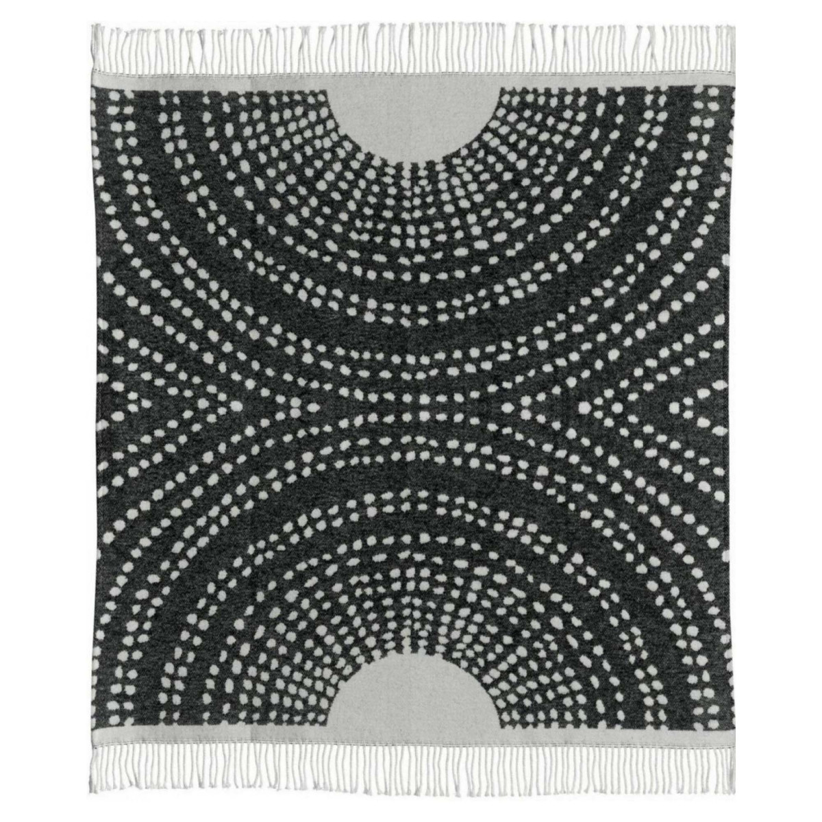Tento plášť Taina so žakárovým vzorom z 50% recyklovanej bavlny a 50% akrylu je ideálny na udržanie tepla pred krbom počas dlhých zimných mesiacov. Jeho grafický dizajn a kontrastný chrbát s lemovanou povrchovou úpravou mu dodávajú nadčasový štýl. Táto uhlíková kocka má rozmer 127X160 cm.