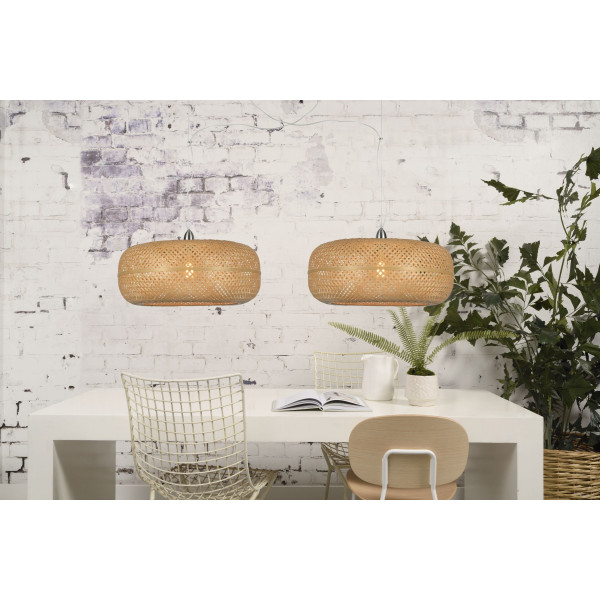 Závesnálampa Palawan vyrobená z bambusu a železa prináša interiéru pohostinnosť a originalitu. Vyznačuje sa dĺžkou 60 cm, nastaviteľnou výškou 25 až 250 cm a veľkosťou základne 60 cm v priemere a hrúbke 25 cm. Toto svietidlo má základňu E27 (žiarovka nie je súčasťou balenia).