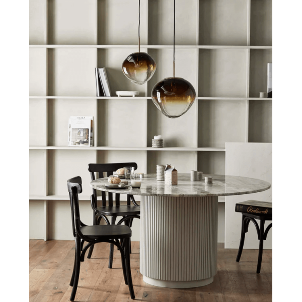 Stolová lampa Edfu prináša do miestnosti charakter a umožňuje vám vytvárať tematické priestory. Je ručne vyrobený, takže tvar lampy sa môže líšiť od položky k položke. Táto lampa má organický tvar a farby sa líšia. Jeho hodnotenie je ø28x28cm.