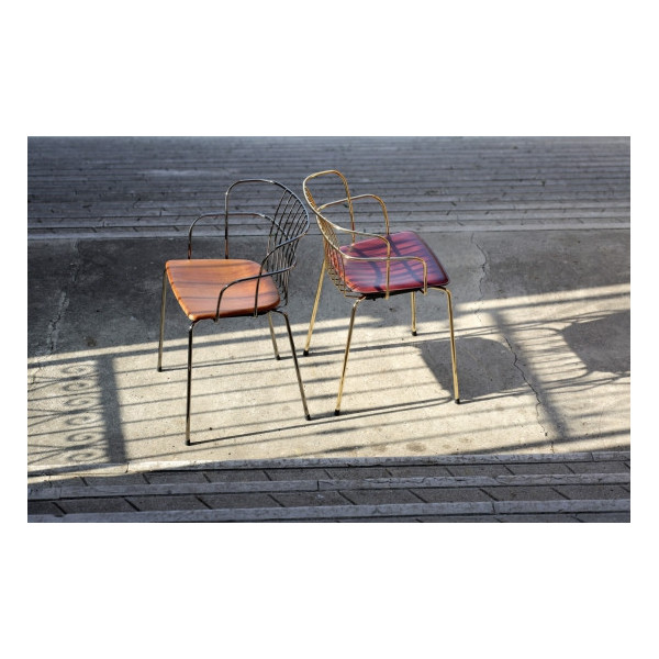 Kreslo, dizajn Marc Sadler. Sedadlo z polypropylénu, operadlo z oceľového drôtu, rám 4 nohy v