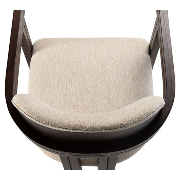 Praktická a funkčná jedálenská stolička Mako je elegantný a pohodlný kus nábytku vyrobený z dreva Mindi, ktorý dodáva každej miestnosti nádych sofistikovanosti. Pokrytá textíliou sezamovej farby so zložením 85% polyesteru a 15% viskózy, je odolná aj odolná. S rozmermi 61x57,5x82 cm a výškou sedadla 46 cm ponúka optimálny komfort pri dlhodobom používaní. Táto stolička je ideálna pre moderné alebo tradičné obytné priestory.