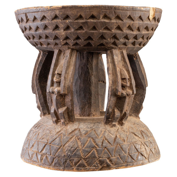 Táto krásne vyrezávaná dogonská stolička je vynikajúcim príkladom afrického umenia a kultúry. Pochádza z polovice 20. storočia a meria 32,5x32x33 cm. Stolička je vyrezávaná z prírodného dreva a predstavuje dva symetrické kotúče. Horný disk predstavuje oblohu a spodný disk predstavuje Zem. Štyri predkové postavy alebo nommo, ktoré podporujú horné sedadlo, predstavujú predkov považovaných za autoritné postavy. Toto jedinečné dielo je symbolom duchovnosti a spojenia medzi človekom a božstvom.